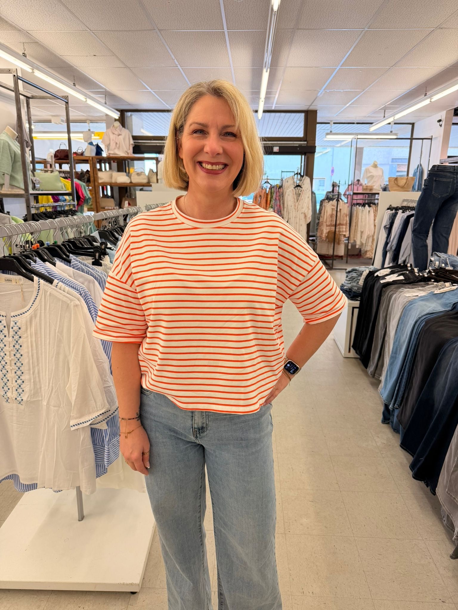 - Gestreiftes T-Shirt bringt frische Farbe in deiner Gadrobe